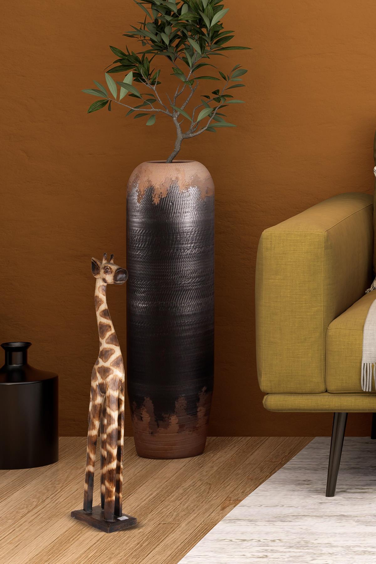 Doğal ahşabın sıcaklığını ve zürafa figürünün sembolik gücünü bir araya getiren bu el yapımı dekoratif ahşap zürafa, yaşam alanlarınıza zarafet ve anlam katar. Usta işçilikle oyulmuş ve doğal dokusu korunarak şekillendirilmiştir.